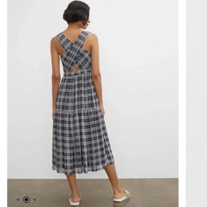 Cross check. A set-on waistband defines the waist of our plaid-patterned crepe midi dress while crisscross straps at the back add a little fun. Distinguishing details solidify this as a piece you'll gravitate towards all summer long. In our newest, inhouse-designed plaid.