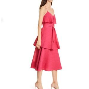 NWT Club Monaco Tiered Maxi Dress w Belt Sleeveless Scoop Neck Sun Dress Pink 0