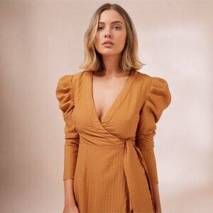 NWT C/meo Collective ADVANCE LONG SLEEVE WRAP DRESS IN MUSTARD