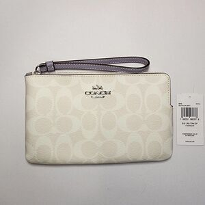 NWT Coach 6648 Large Corner Zip Wristlet Chalk Signature Canvas Mist Lavender