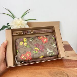 NWT Coach Boxed Long Zip Around Wallet In Signature Canvas With Floral Print