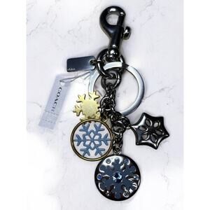 This New With Tags Coach C7100 Snowflake Cluster Bag Charm & Key Ring is sold out and just adorable! Featuring silver and gold snowflakes with blue and gem accents, this charm is perfect for the holiday season and the mixed metals would look great with any Coach bag. If you love the quality and style of Coach, you need this bag charm in your collection!