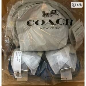 The NWT Coach CAK44 Ashton shoulder bag in Indigo denim and smooth leather is a stylish and versatile accessory for any occasion. This medium-sized crescent-shaped bag features a zip closure, denim shoulder strap with a silver hardware accent, and a versatile interior lined with blue polyester fabric. The iconic Coach branding and accents like the detachable strap and bag charm add a touch of luxury to this designer piece. Perfect for travel, parties, casual outings, or workwear, this bag exudes a fashionable and timeless appeal. Made in Vietnam, this Coach Ashton bag is a must-have for any fashion-forward woman.