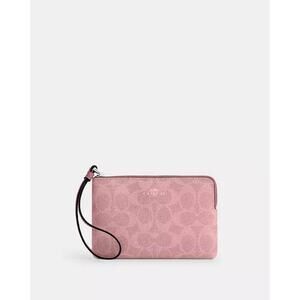 NWT Coach CAQ75 Corner Zip Wristlet In Signature Canvas In Silver /Dusty Pink