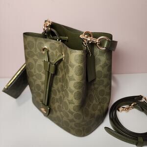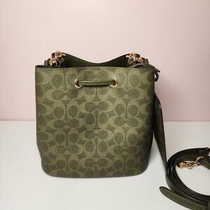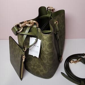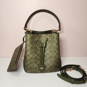NWT Coach CBH07 Rowan Bucket Bag In Signature Canvas Gold/Olive