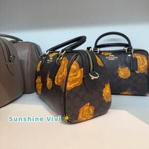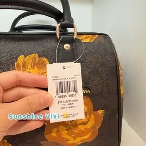 NWT Coach CCE30 Rowan Satchel Bag Canvas &Leather with Floral Print Walnut/Black