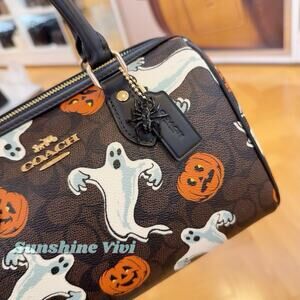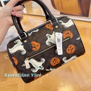 NWT Coach CCE73 Rowan Satchel Bag Signature Canvas Halloween Print Walnut 2025