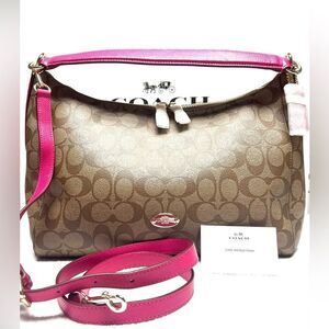 🔥NWT! Coach CELESTE Hobo Handbag East/West Khaki/Pink Ruby Msrp:$350.00