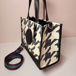 NWT Coach CJ622 Dempsey Carryall With Houndstooth Print And Patch Cream/Black