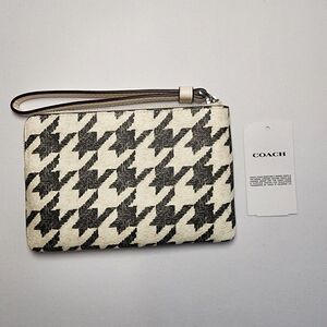 NWT Coach CK431 Corner Zip Wristlet with Houndstooth Print Cream/Black