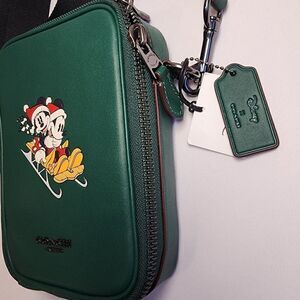 NWT Coach CM028 Disney X Coach Stanton Crossbody with Mickey Mouse Winter Motif