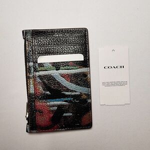 NWT Coach CM159 X Mint + Serf Zip Card Case Graffiti in Sv/Black Pebble …