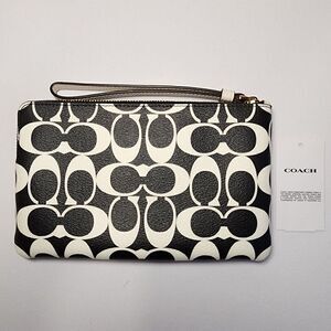 NWT Coach CP488 Large Corner Zip Wristlet Black & White Signature