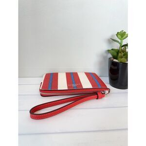 NWT Coach Corner Zip Wristlet With Stripe Print