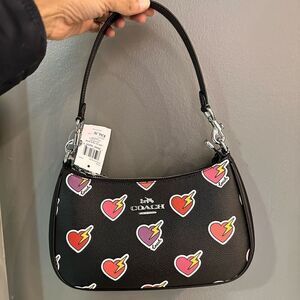 NWT ❤️ Coach CY346 Teri Shoulder Satchel Leather Bag Heart Bolt Print crossbody