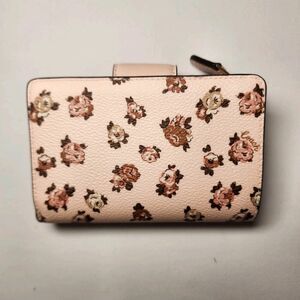 NWT Coach CZ343 Medium Corner Zip Wallet Rosette Floral Pink Canvas Compact