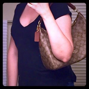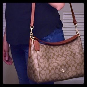 Canvas and leather bag. Inside zip, cell phone and multifunction pockets. Zip top closure, satin lining.
