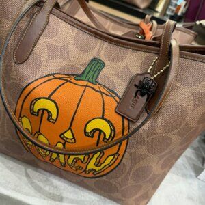 NWT Coach City Tote Bag In Signature Canvas With Halloween Print CCE70