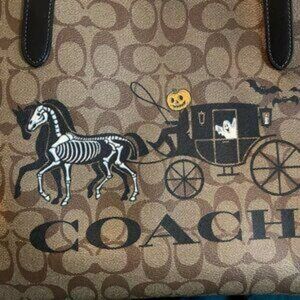 COACH HALLOWEEN CITY TOTE With SKELETON HORSE AND CARRIAGE.