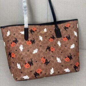 NWT Coach City Tote In Signature Canvas With Halloween Print CW450