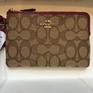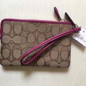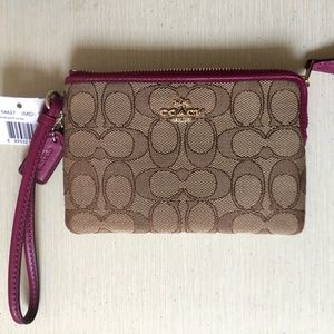 NWT Coach Corner Zip Khaki/ Fuchsia Wristlet