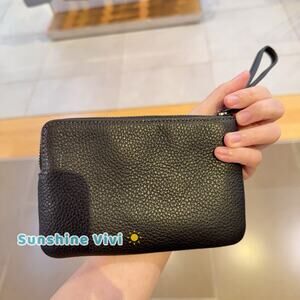 NWT Coach Corner Zip Wristlet Rivets Gunmetal/Black Multi Pebble Leather CCJ75