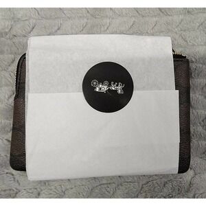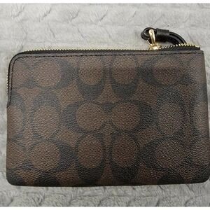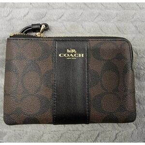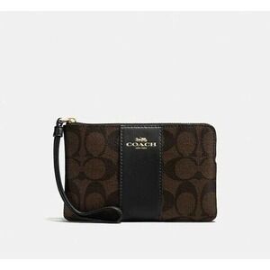 NWT Coach Corner Zip Wristlet Signature Leather Canvas Black Saddle F58035