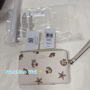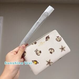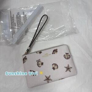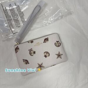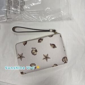 NWT Coach Corner Zip Wristlet With Shell Print CBP23 Gold/Chalk Multi