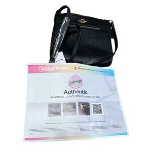• Authentic COACH product • Mini Rowan File Bag style • Made from Black Pebble Leather • Crossbody design for convenience • Size: 8" x 7.5" x 1" • New with tags (NWT)