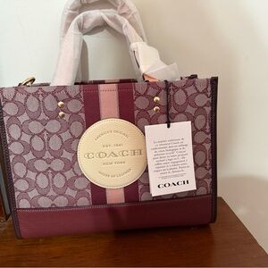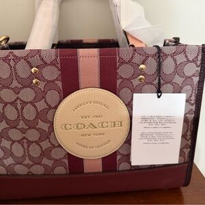 NWT Coach Dempsey Carryall Bag In Signature Jacquard with Stripe and Coach Patch