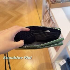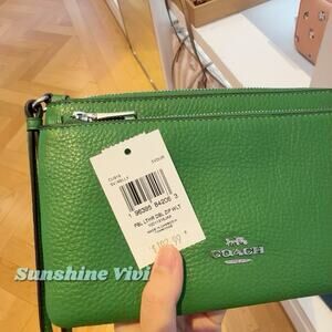 NWT Coach Double Zip Wallet CU919 Silver / Kelly Pebbled Leather