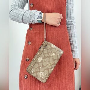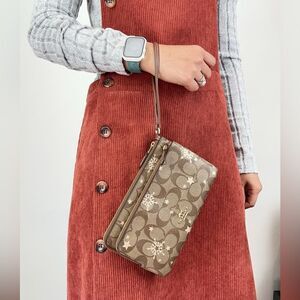 NWT Coach Double Zip Wallet In Signature Canvas With Star And Snowflake Print