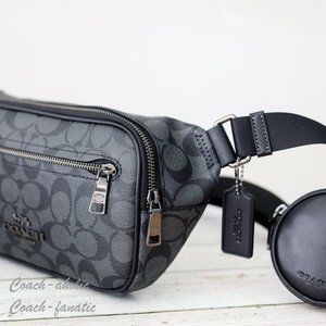 NWT Coach Elias Belt Bag In Signature Canvas Gunmetal/Charcoal