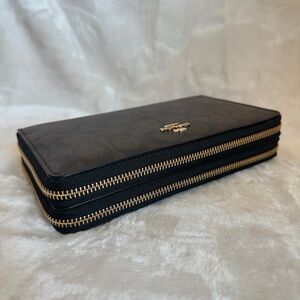 NWT! Coach F23552 Double Zip Travel Wallet In Signature Canvas Card Phone Pouch