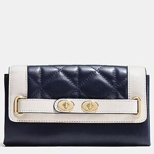 NWT Coach F53910 Envelope Wallet Navy Blue Quilted Leather $295 Imperfect As Is