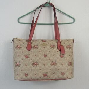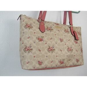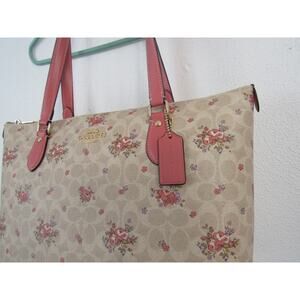 NWT Coach Gallery Tote Bag In Signature Canvas With Floral Print Pink and Sand