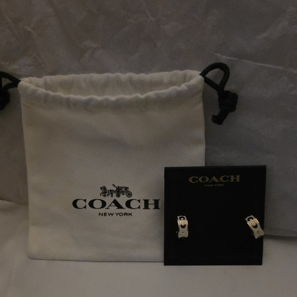 Chic gold and white earrings by Coach. Ideal for stylish looks.