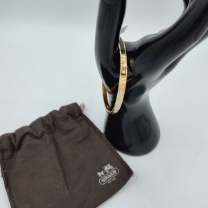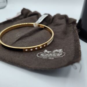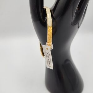 Elegant Coach gold bangle bracelet adorned with sparkling crystals. Perfect for adding a touch of luxury to any outfit.