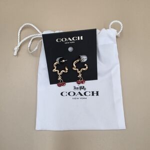 NWT Coach Gold and Red Cherry Earrings And Dusty