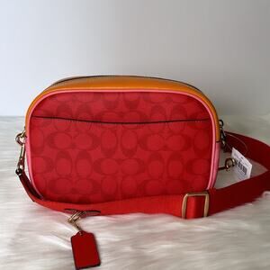 NWT Coach Jamie Camera Bag In Blocked Signature Canvas/Red/ Smooth Leather