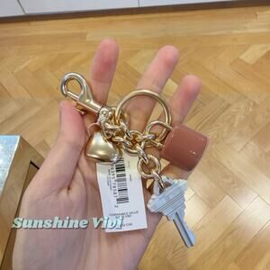 NWT Coach Key Cluster Bag Charm Keychain Gold Pink White Multi CP891