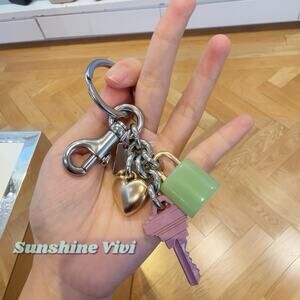 NWT Coach Key Cluster Bag Charm Keychain Silver Pink Gold Multi CP891