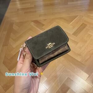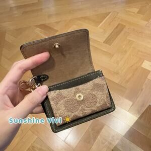 NWT Coach Klare Bag Charm With Signature Canvas Army Green/Tan CCE81
