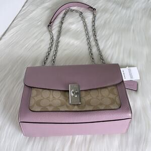 NWT Coach Lane Shoulder Bag In Signature Canvas/PebbleLeather/ Khaki-Purple