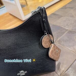 NWT Coach Laurel Large Shoulder Bag With Mirror Charm And Pouch CBI93 Black Tan