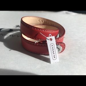 NWT Coach Leather Double Wrap Turnlock Bracelet 96317 Color: Carnelian