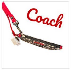 NWT~ Coach Leopard Print Wristlet~ Red Trim~ Coach Tag~ So cute!~ Must Have(D17)