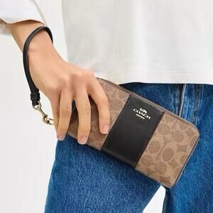 NWT Coach Long Zip Around Wallet CW947 Signature Canvas/Leather Gold/Tan/Black