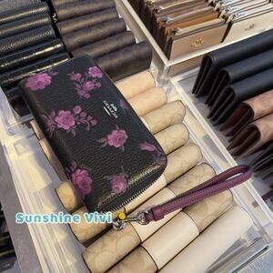 NWT Coach Long Zip Around Wallet With Floral Print CCL36 Black/Purple