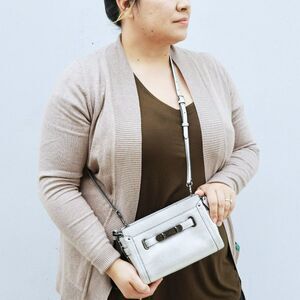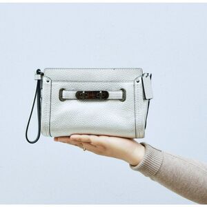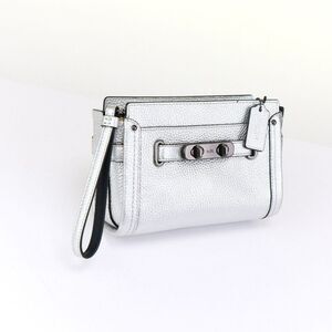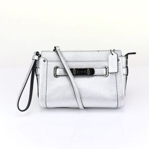 NWT Coach METALLIC Swagger Clutch Crossbody Bag SILVER